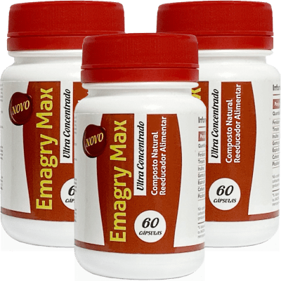 Emagry Max atua como auxílio no emagrecimento: tem ação termogênica, neutraliza a gordura, acelerando o metabolismo e consequentemente o gasto calórico.